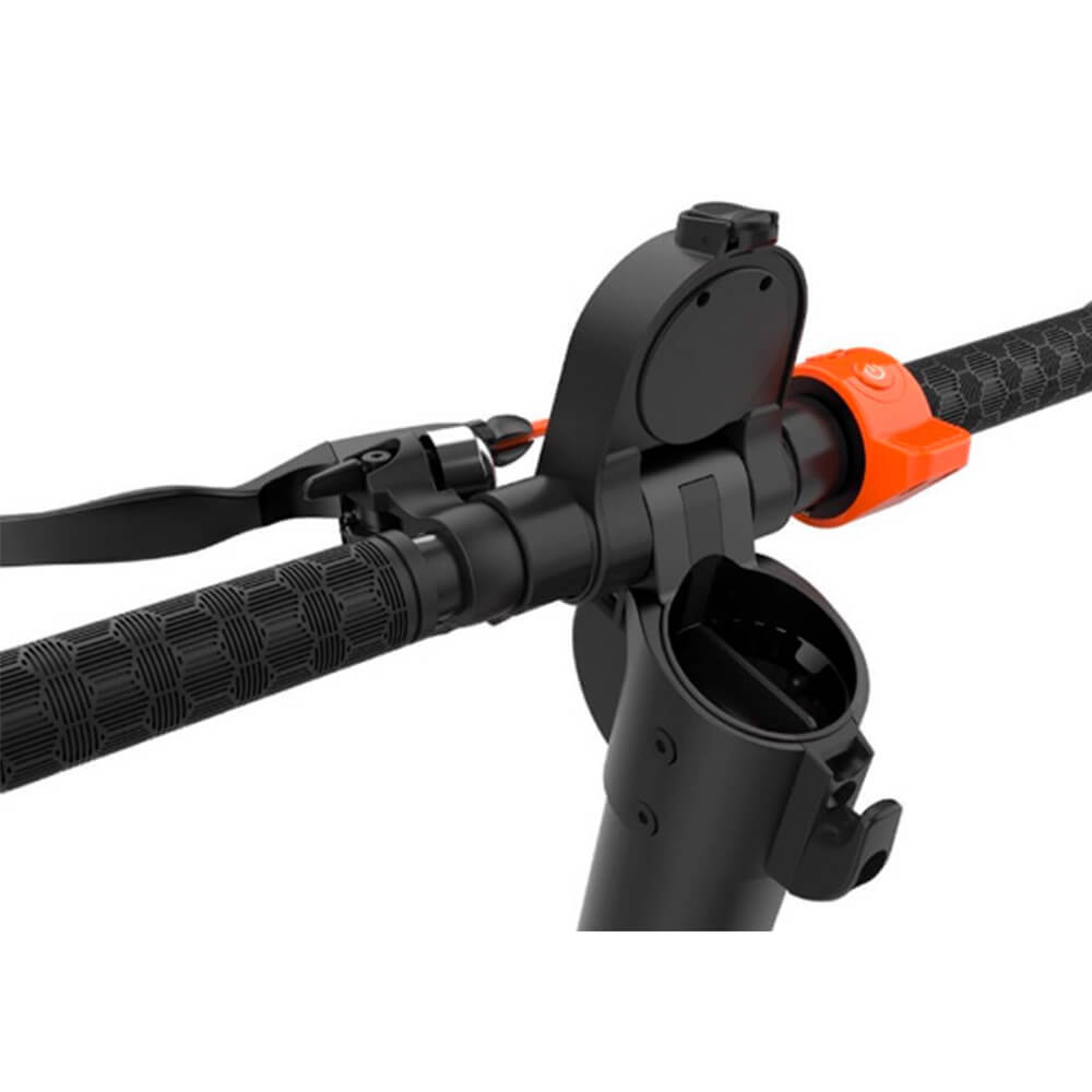 На рулевой стойке электросамоката Kugoo HX (Jilong) располагается яркий дисплей, который отображает всю необходимую информацию: заряд аккумулятора. скорость, время и режим передвижения. На левой части руля располагается рычаг тормоза с довольно быстрым ответом на сигнал «стоп», а на правой – управление подсветкой и активации передней фары.