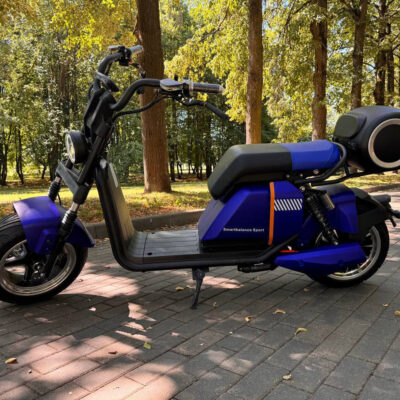 В сезоне 2024 года появилась очередная новинка – электроскутер Smart Balance Sport. Его характеристики впечатляют: несмотря на свой внешний вид, мощный двигатель на 3000 Вт способен проявить зверские возможности. Аккумуляторная батарея емкостью 30 Ач позволяет проехать до 50 км на одном заряде.