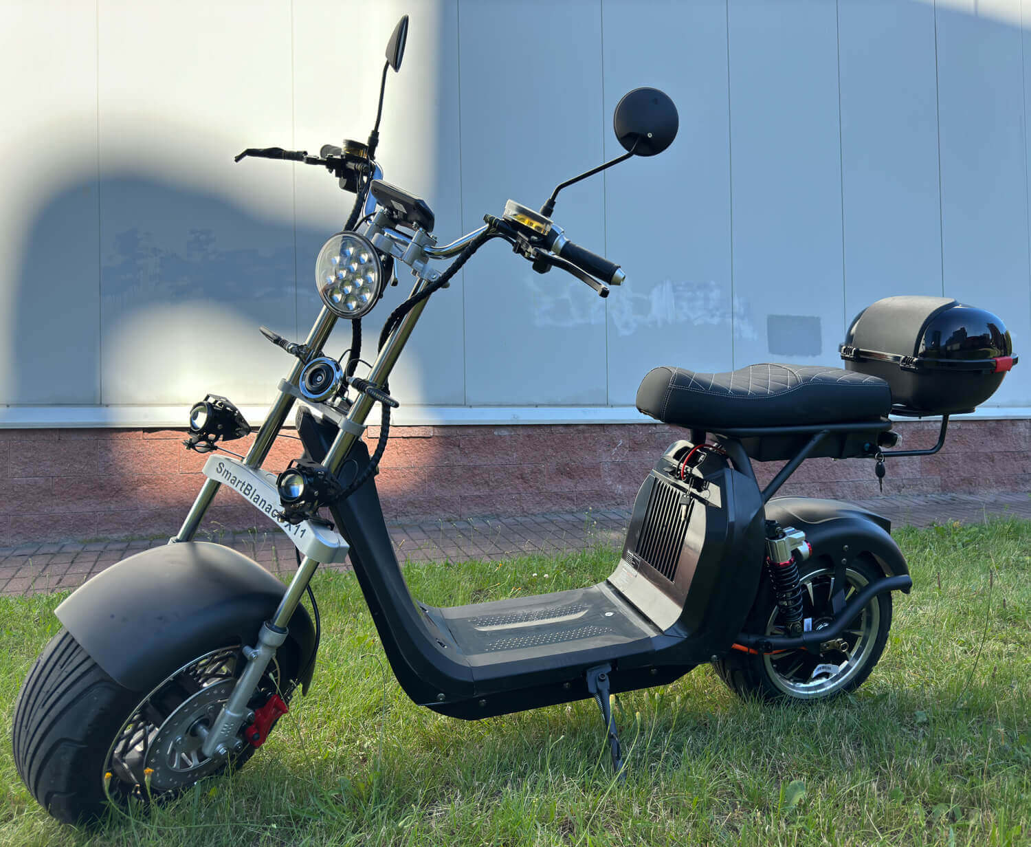 Конструкция Smart Balance X11 рассчитана на перевозку сразу двух человек, а для пассажира сзади предусмотрена спинка. Приятным бонусом является вместительный кофр, в который можно положить все необходимые вещи.