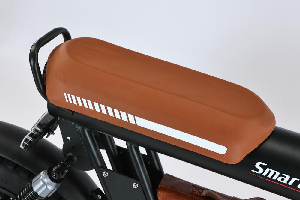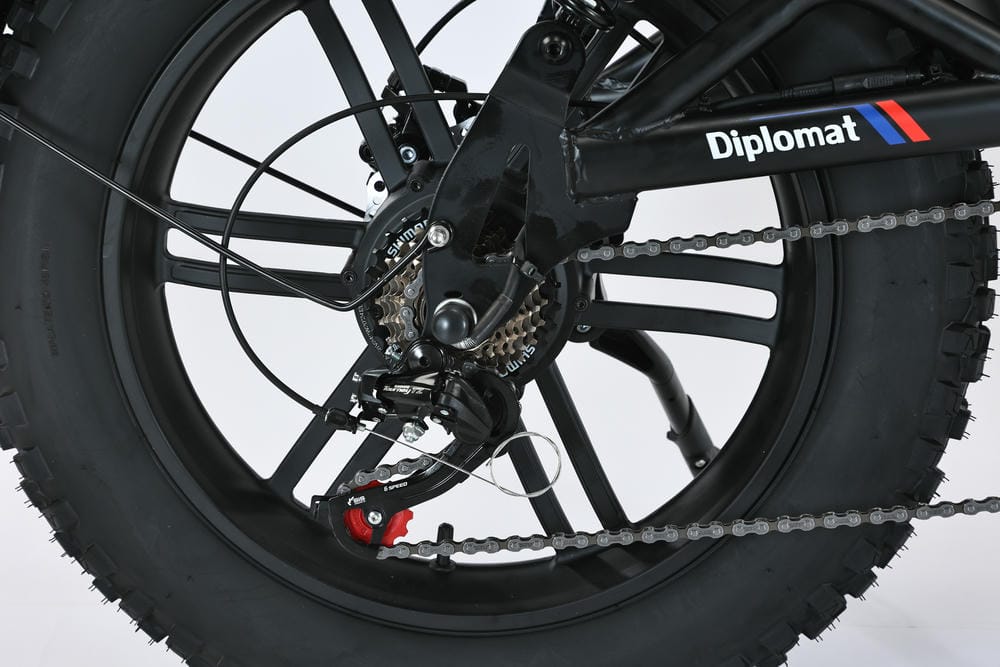 SmartBalance Diplomat — это электрический фэтбайк с необычным дизайном и названием, благодаря “дипломату” — удобной сумке для перевозки вещей, которая идет в комплекте. Эта модель обеспечивает комфортную езду с помощью широких покрышек, позволяющих преодолевать сложные участки дороги, и 4 амортизаторов: двух спереди и двух сзади. Все органы управления сосредоточены на руле: слева — кнопка звукового сигнала, модуль управления светом и поворотниками, рычаг тормоза и модуль управления электропередачами; справа — переключатель механических передач, курок газа и рычаг тормоза. В центре размещен дисплей бортового компьютера. Аккумуляторная батарея на 20 Ач находится под сиденьем, остается быстросъемной и обеспечивает оптимальный баланс между запасом хода и весом велосипеда. С 7 скоростями от Shimano, Diplomat справится с бездорожьем и сложными участками, такими как грязь или песок, благодаря пониженным передачам.