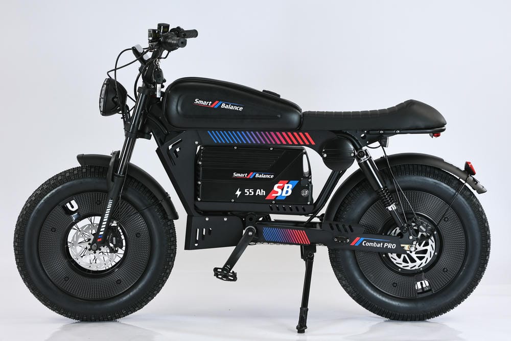 SmartBalance Combat Pro – это удивительный гибрид электроскутера и электровелосипеда, выполненный в стиле электромотоцикла. Одним из ключевых преимуществ этой модели является мощная АКБ емкостью 55 Ач. Это один из самых емких аккумуляторов среди всех представленных моделей электротранспорта в нашем магазине. Яркий и впечатляющий дизайн Combat Pro привлекает взгляды, а электродвигатель мощностью 240 Вт позволяет ездить на нем без необходимости в водительских правах.