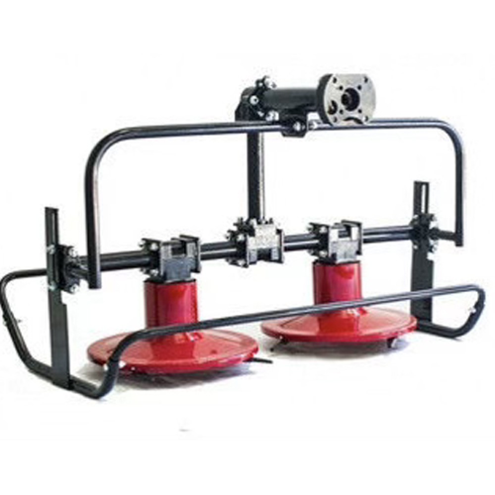 Сегментная косилка с приводом от вала отбора мощности. Два вращающихся диска с ножами срезают траву и мелкий кустарник. Подходит для заготовки сена и покоса зарослей